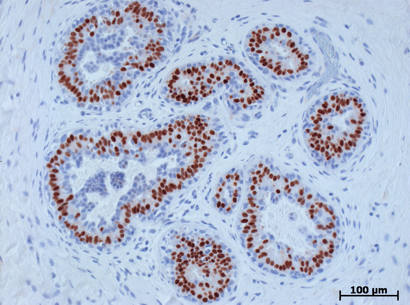 Estrogen receptor in human mammalian gland - rabbit monoclonal, AmpliStain™ R1-HRP |
