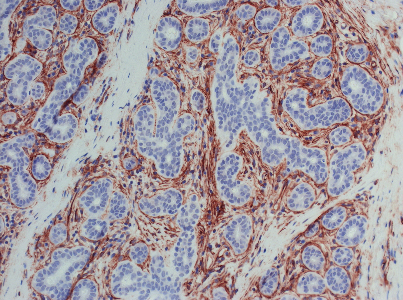 HER2 CISH in a breast carcinoma with HER2 amplification - DIG-labeled HER2 probe, mouse monoclonal, AmpliStain™ M2-HRP |